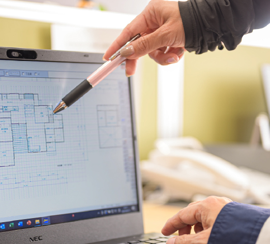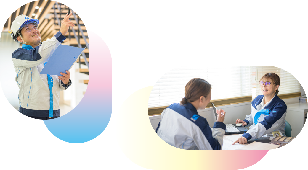 各事業部を横断し、小さな補修から建築工事まで幅広く対応します。様々な角度から現場の支援も行います。