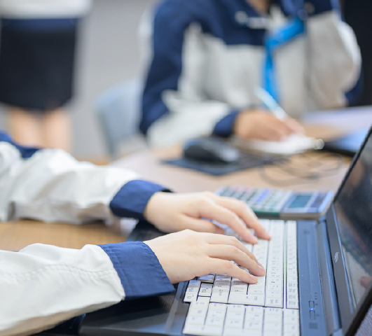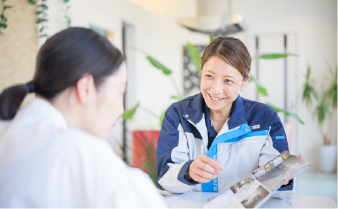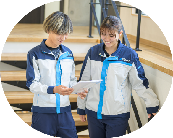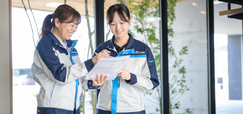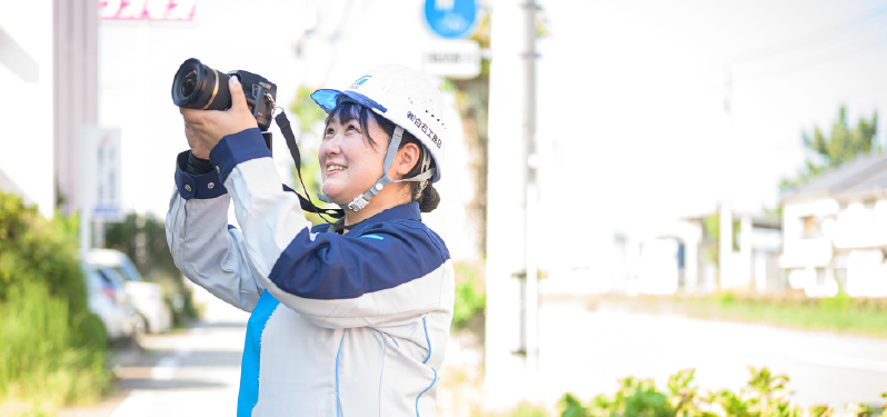 本社・営業所での事務作業をはじめ、SNSの運用や現場の撮影などの外回りも担当。社員全体を支える縁の下の力持ちとして、各事業部と連携しながら日々業務を遂行します。