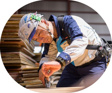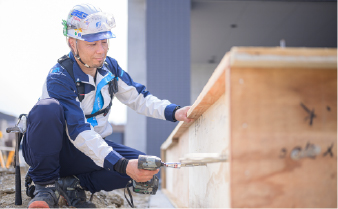 型枠工事の一連の作業を担当します。加えて、型枠現場施工監督として型枠加工図の作成・材料の発注・段取りなど、現場を動かす準備作業も行いつつ、施工管理だけではなく、現場で手を動かす実作業もメインで行います。型枠を外し、美しい仕上がりを見た時に、大きな達成感を感じます。精度と段取りにこだわっています。