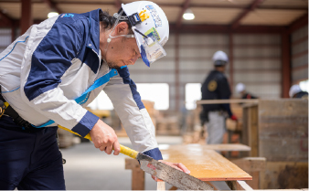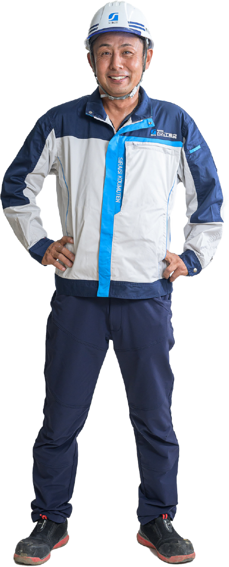 白石工務店では、家の基礎だけでなく、工場などの設備基礎、鉄骨を立てる柱の基礎、柱巻き、腰壁までコンクリート全般を手がけられます。他社は型枠の専門業者に外注する場合が多い中、当社は型枠から建築まで一貫して対応できます。入社当初は未経験で不安もありましたが、先輩が優しく仕事を教えてくれました。自分次第でどんどん成長できる職場です。